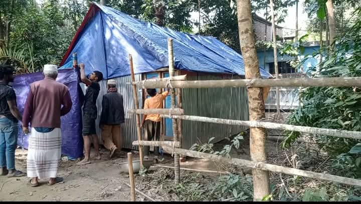 পরে স্থানীয়দের সহায়তায় পরিবারের সদস্যরা বাড়িতে ফিরে এসে ঘরের ব্যাপক ক্ষয়ক্ষতি দেখতে পান।