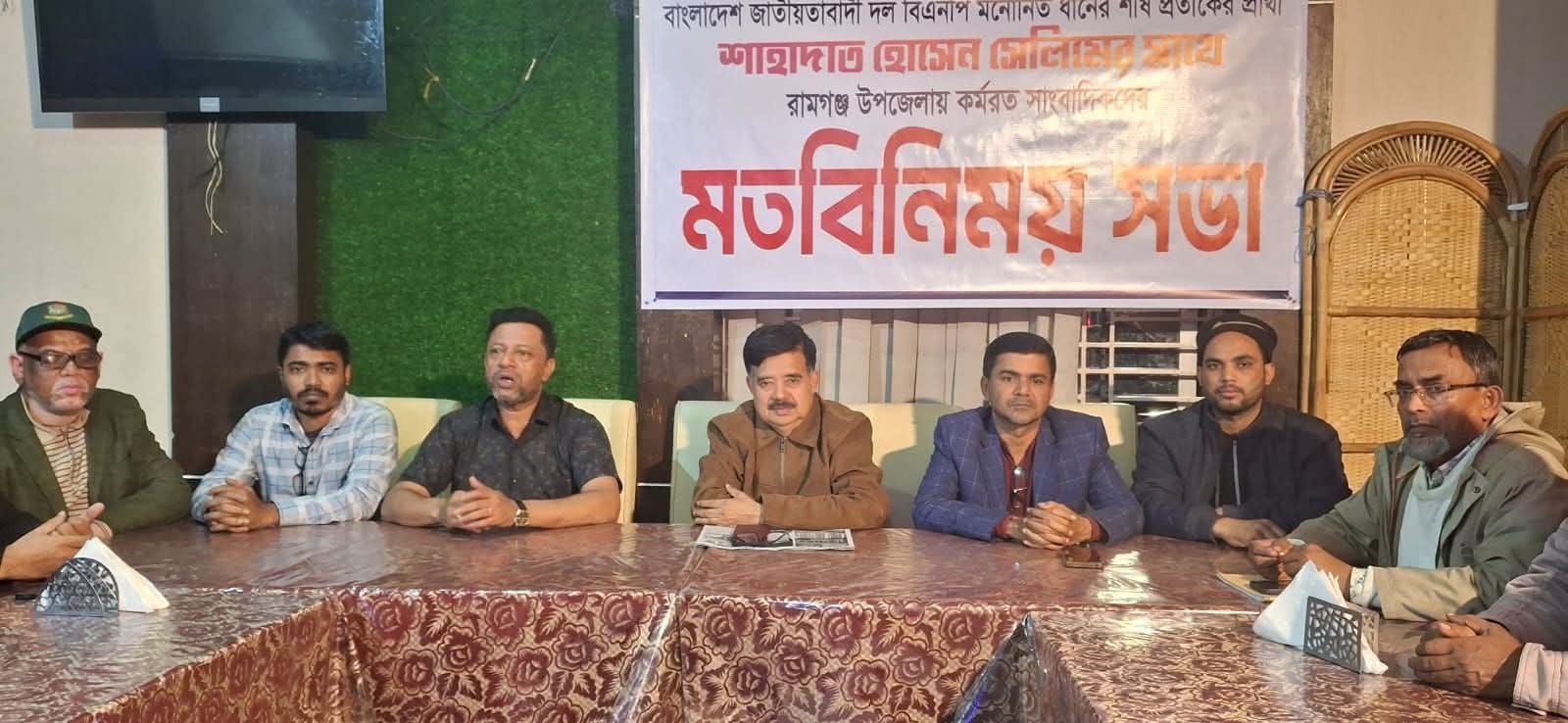 লক্ষ্মীপুরের রামগঞ্জে মঙ্গলবার রাত দশটায় রামগঞ্জ শহরস্থ ক্যাপসিকাম হোটেল এন্ড রেস্টুরেন্টে লক্ষ্মীপুরে-১ রামগঞ্জ আসনের ধানের শীষ প্রতীকের প্রার্থী মোঃ শাহাদাত হোসেন সেলিমের রামগঞ্জ প্রেসক্লাবের সাংবাদিকদের এক মতবিনিময় সভা অনুষ্ঠিত হয়েছে।