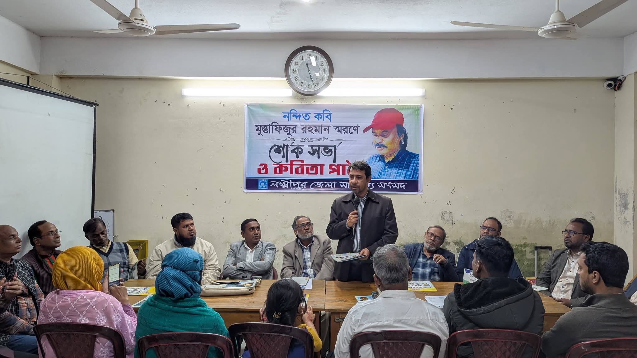 লক্ষ্মীপুর জেলা সাহিত্য সংসদ এর উদ্যোগে বিশিষ্ট কবি মুস্তাফিজুর রহমান স্মরণে শোকসভা ও কবিতা পাঠ অনুষ্ঠিত হয়। বুধবার ( ২৮ জানুয়ারি ২০২৬) লক্ষ্মীপুর বালিকা বিদ্যা নিকেতন মিলনায়তনে অনুষ্ঠিত সভায় প্রধান অতিথি ছিলেন লক্ষ্মীপুর সরকারি কলেজের দর্শন বিভাগের প্রফেসর মাহবুব এলাহী সানী।বিশেষ অতিথি ছিলেন লক্ষ্মীপুর প্রেসক্লাবের সাধারণ সম্পাদক সাইদুল ইসলাম পাবেল। সাহিত্য সংসদ এর সিনিয়র সহ সভাপতি নন্দিত সংগীত শিল্পী মাহবুবুল বাসার এর সভাপতিত্বে সভায় স্বাগত বক্তব্য দেন সাধারণ সম্পাদক গাজী গিয়াস উদ্দিন।