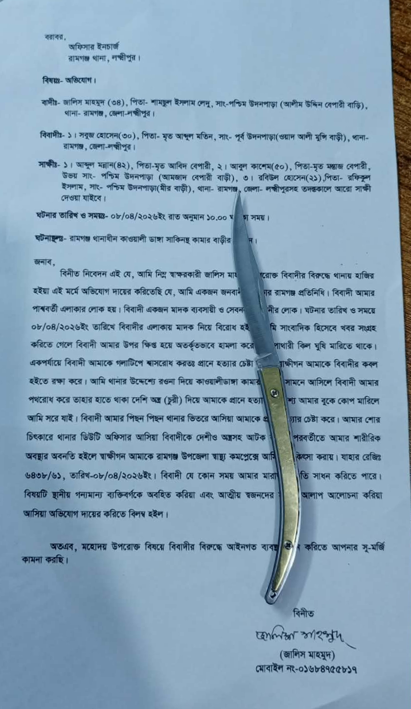 সাংবাদিকের উপর হামলার পর চাকু নিয়ে থানায় হাজির যুবক, আটক